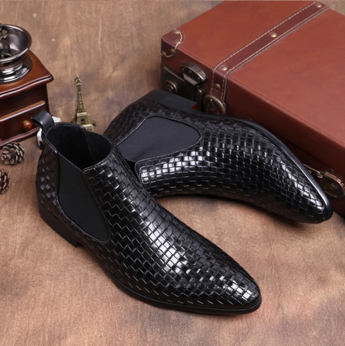 🔥Hot Sale🔥Latest design products shoes fashion woven men's leather boots dress shoes men's ankle boots 150 sales